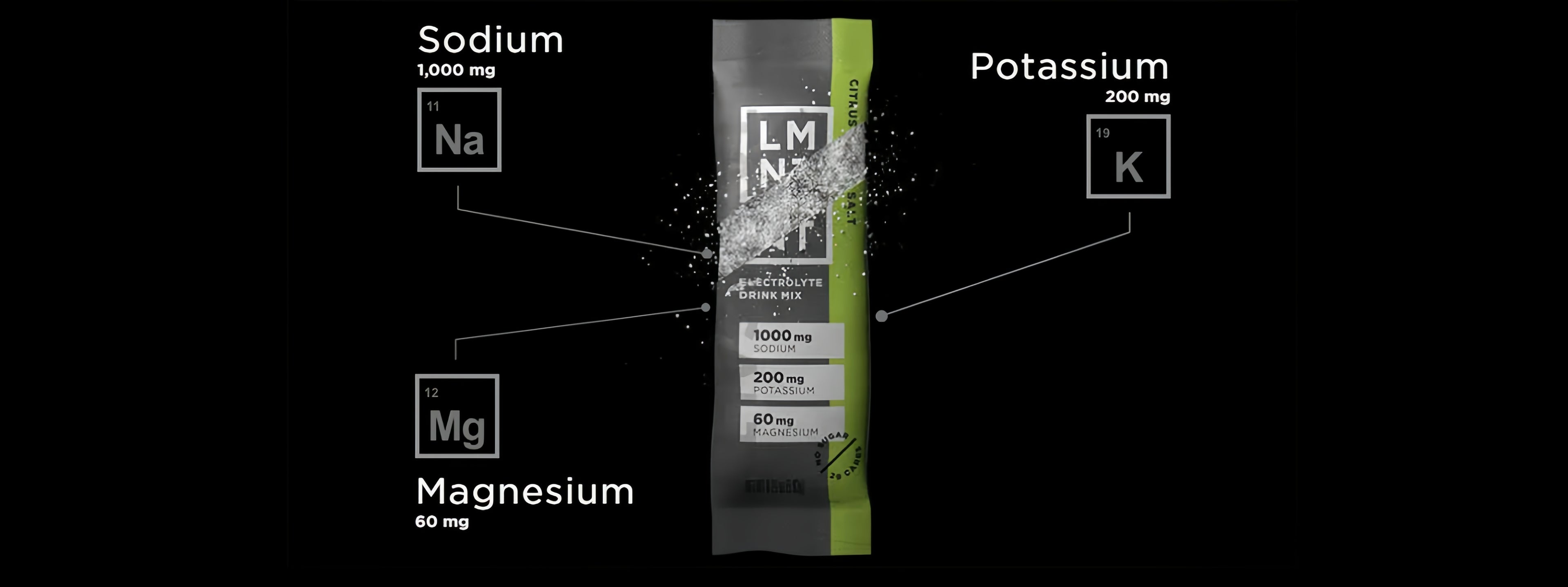 Determining how many stick packs or cans to consume daily is quite dependent on the individual. The latest science indicates consuming 4–6 grams of sodium, 3.5–5 grams of potassium, and 400–600 milligrams of magnesium per day leads to optimal health outcomes. These electrolytes are best consumed from whole foods, but we designed LMNT to help fill in any dietary gaps. We hear that many folks find 1-2 stick packs or cans per day to be optimal, often depending on their activity level. Others use more.
